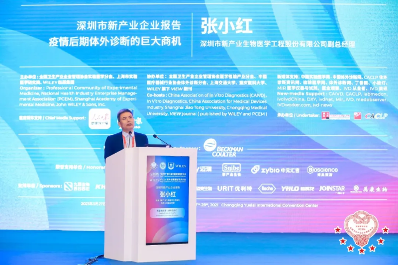 深圳市新产业生物医学工程股份有限公司副总经理张小红发表了《疫情后期体外诊断的巨大商机》的主旨演讲。