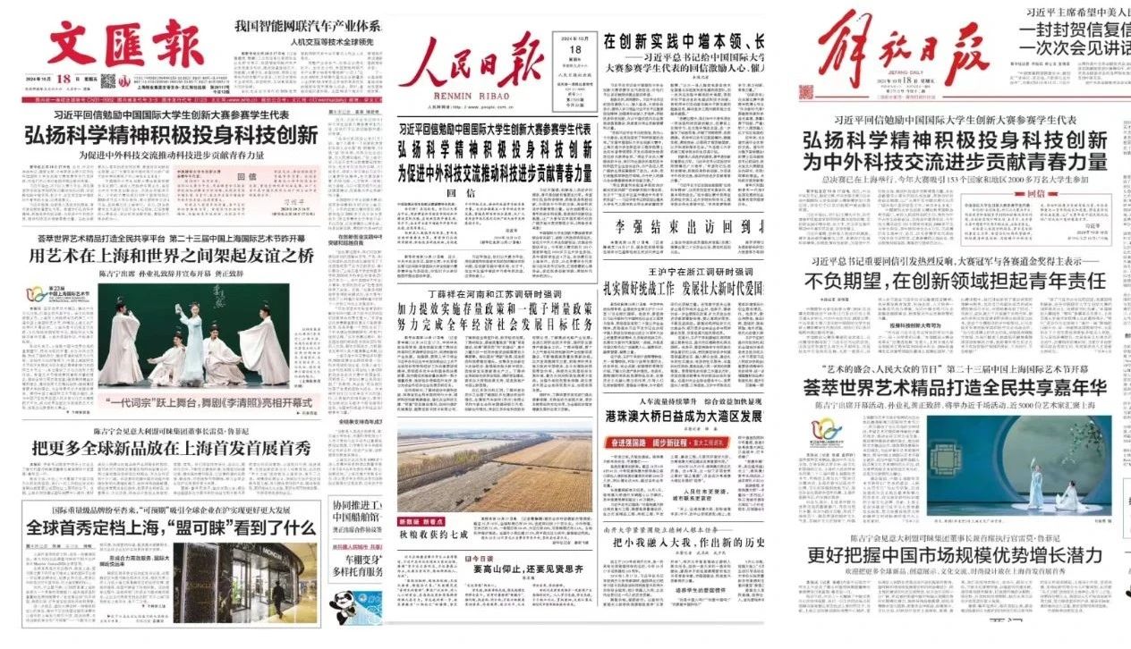 中国国际大学生创新大赛(2024)总决赛及同期活动于10月12日至10月15日在上海交通大学举行。近日,中共中央总书记、国家主席、中央军委主席习近平给中国国际大学生创新大赛参赛学生代表回信,对他们予以亲切勉励并提出殷切希望。