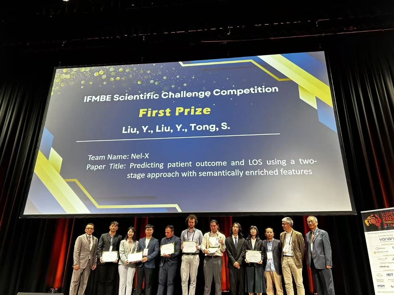 在大会同期举办的IFMBE Scientific Challenge Competition中,上海交大pc28开奖网 两名研究生刘钰沣和刘奕,凭借作品“Predicting patient outcome and LOS using a two-stage approach with semantically enriched features”脱颖而出,斩获该项竞赛第一名。该作品聚焦基于入院初始数据对患者住院时长与结局进行早期精准风险评估的临床需求,创新性地采用融合医学先验知识的ICD编码增强、多维度挖掘深层特征以及双阶段堆栈集成模型预测框架,展现出扎实的科研基础与前沿的创新思维,得到了竞赛评委的高度认可。这一奖项不仅是对两位学生个人能力的肯定,更是上海交大在生物医学工程领域人才培养质量的有力证明,凸显了学校在引导学生将理论知识与实际应用相结合、培养学生国际竞争力方面的显著成效。